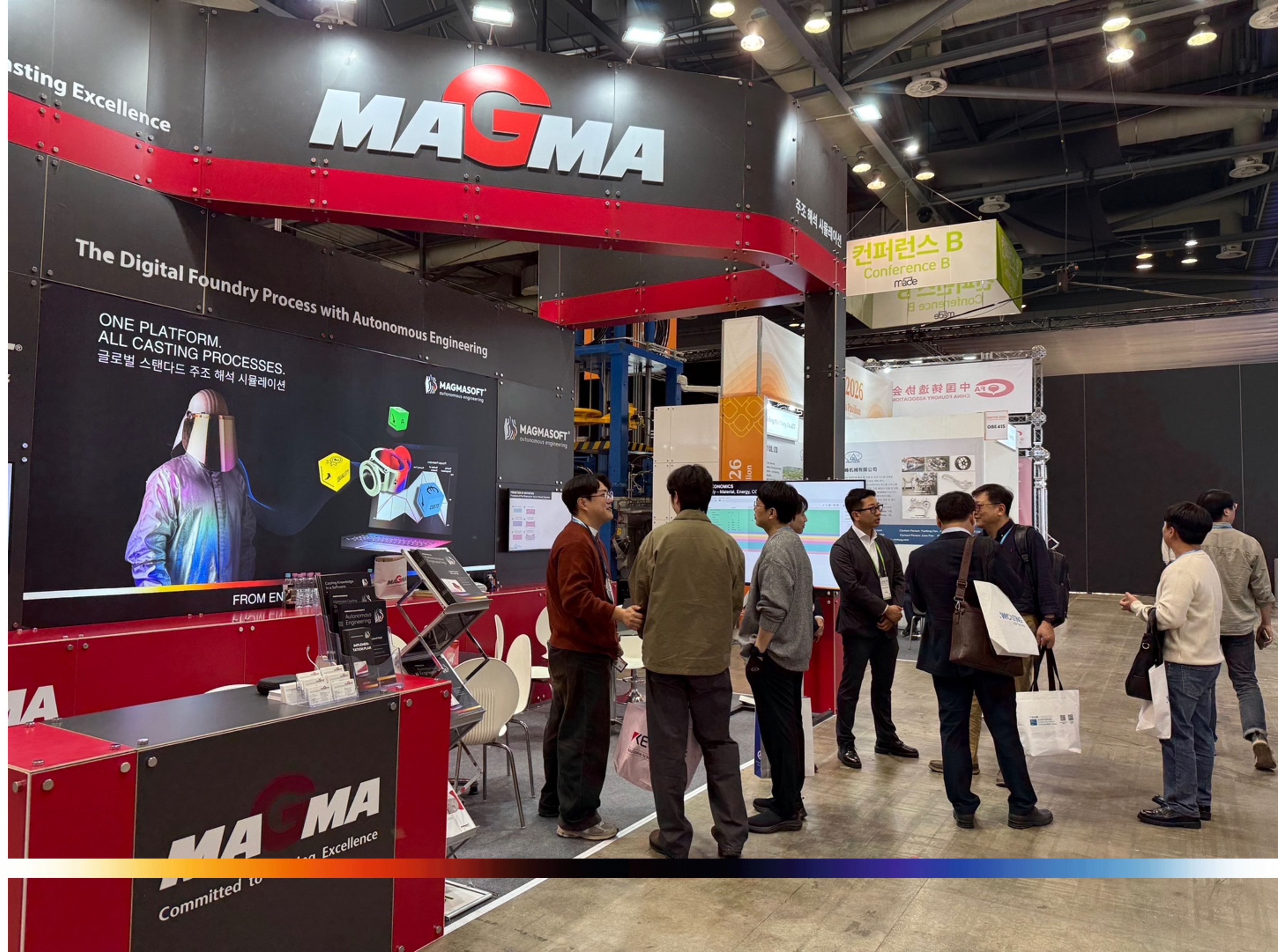 이번 전시에서 MAGMA는 제2전시장 8홀 다이캐스팅 테마관 부스에서 MAGMASOFT®, SIGMASOFT® 그리고 MAGMA ECONOMICS를 중심으로 다양한 공정 해석 기술과 적용 방향을 소개하며 많은 관심을 받았습니다.