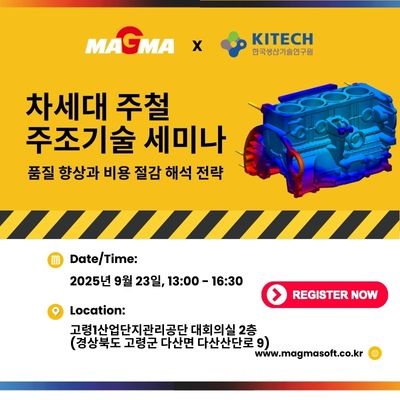 마그마엔지니어링코리아㈜와 한국생산기술연구원이 공동으로 주관하는 이번 세미나는 주철 산업의 최신 기술과 실질적인 해석 및 공정 최적화 방안을 함께 논의하는 자리입니다. 급변하는 시장 환경 속에서 품질 향상과 비용 절감, 그리고 지속가능성이라는 세 가지 과제를 동시에 해결하기 위한 다양한 인사이트를 공유하고, 업계 관계자들과 교류할 수 있는 기회를 제공합니다.